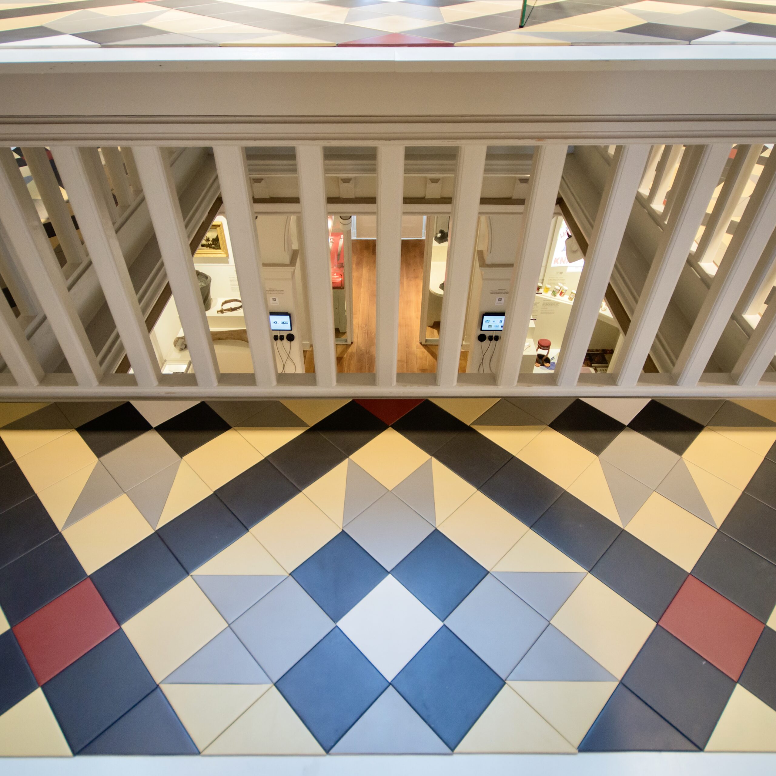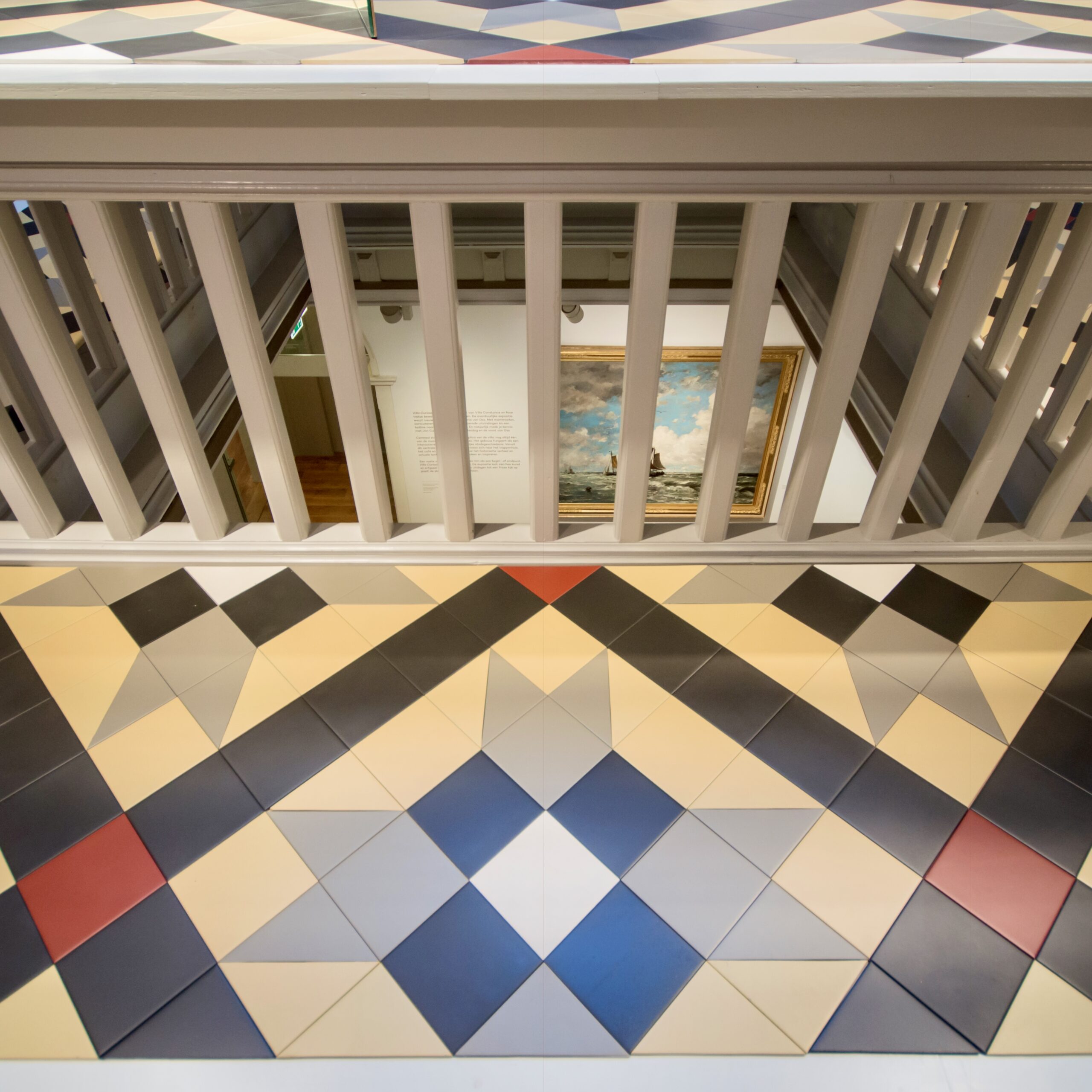 The floor is a copy of the floor down here,” says Veenhuis. “I have been in love with that since the first time I visited this museum.” He decided to add the mirrors. To his own surprise, he only learned while
