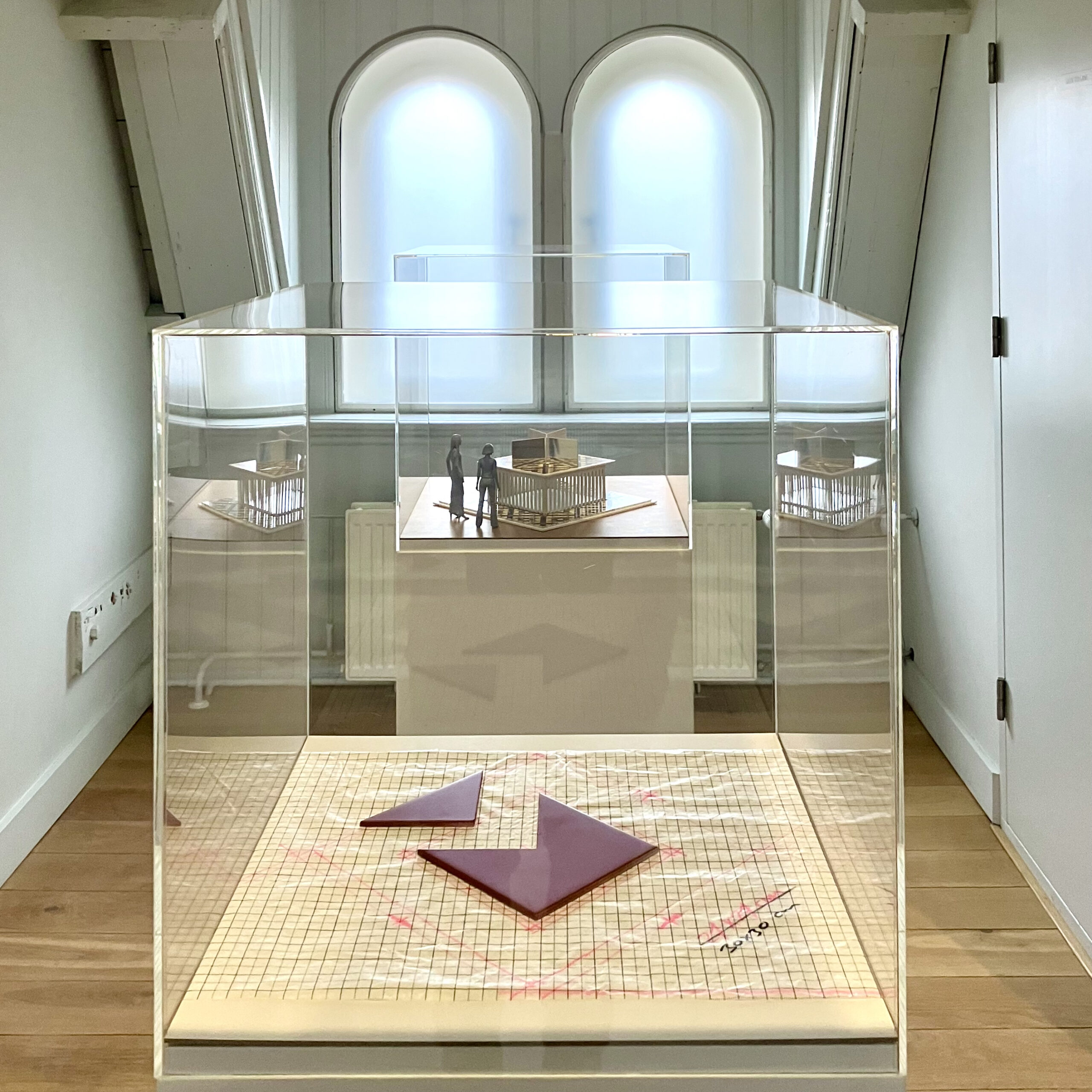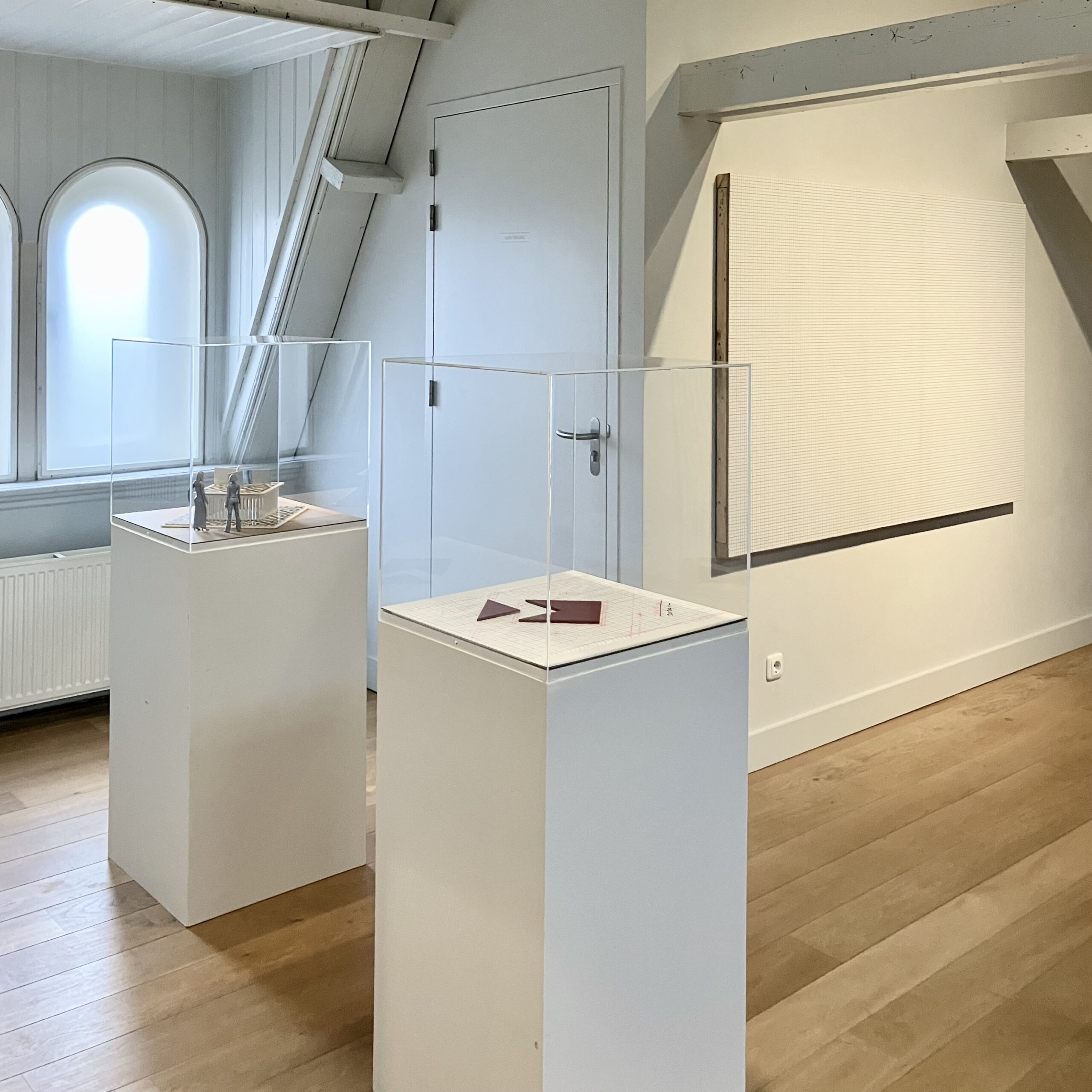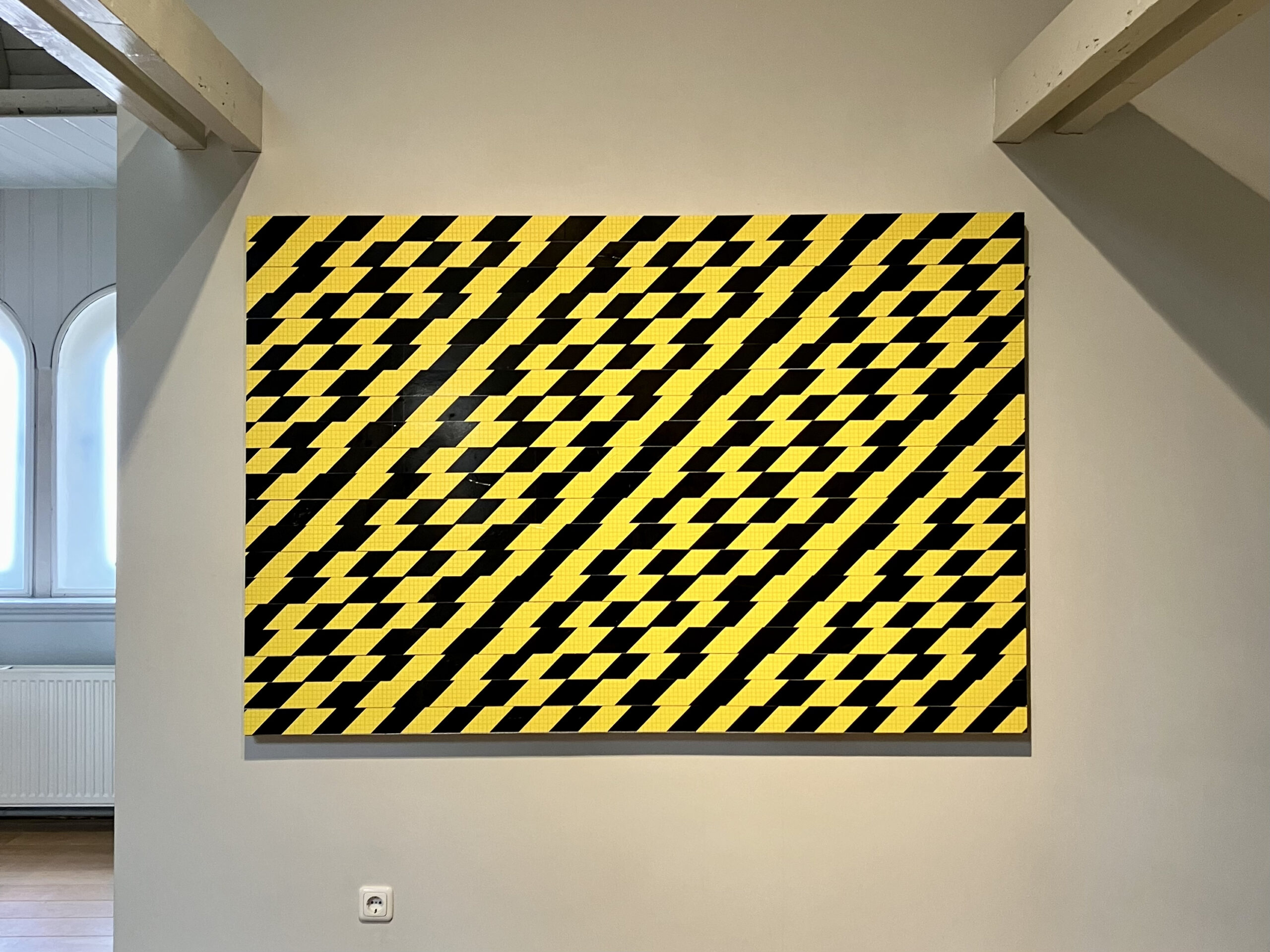 I just found another connection,” he exclaims as he talks about it. “Those tiles in de middle part of the pattern now have a pedestal on which the work rests, and the four pillars on the real floor are exactly below that.” The artist thus tumbles from one parallel to the next. A direct result of working according to fixed patterns, as he often does.